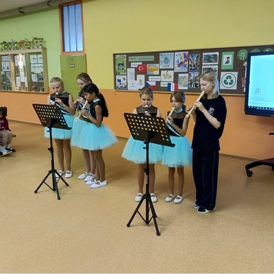 V dopoledním programu účinkovaly flétnistky a mažoretky z prvního stupně, sedmáci zazpívali Sur le pont d'Avignon, prvostupňový sbor zazpíval Save the Planet song a čtvrťáci zinscenovali scénku o ochraně životního prostředí. Program moderovali deváťáci, kteří také vedli rozhovor s bývalými žáky naší školy, dnes maturanty, o tom, jaké jim zapojení v minulých projektech dalo cenné zkušenosti do života.